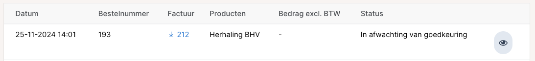 Het is wel zichtbaar bij de bestellingen dat er een aanvraag is gedaan en dat de status 'In afwachting van goedkeuring' is.