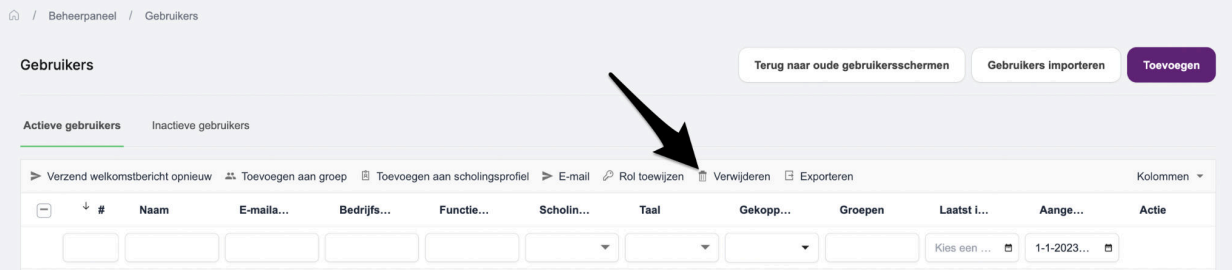 De gebruiker is nu op inactief gezet. Dat betekent dat de gebruiker niet meer kan inloggen. Je betaalt ook niet langer voor deze gebruiker. Zijn voortgang blijft echter nog wel bewaard voor het geval je de gebruiker weer wil herstellen.