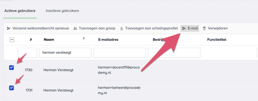 De deelnemer ontvangt de e-mail in de eigen inbox. Bij Menu > Verzonden berichten zijn de verstuurde berichten ook terug te vinden.