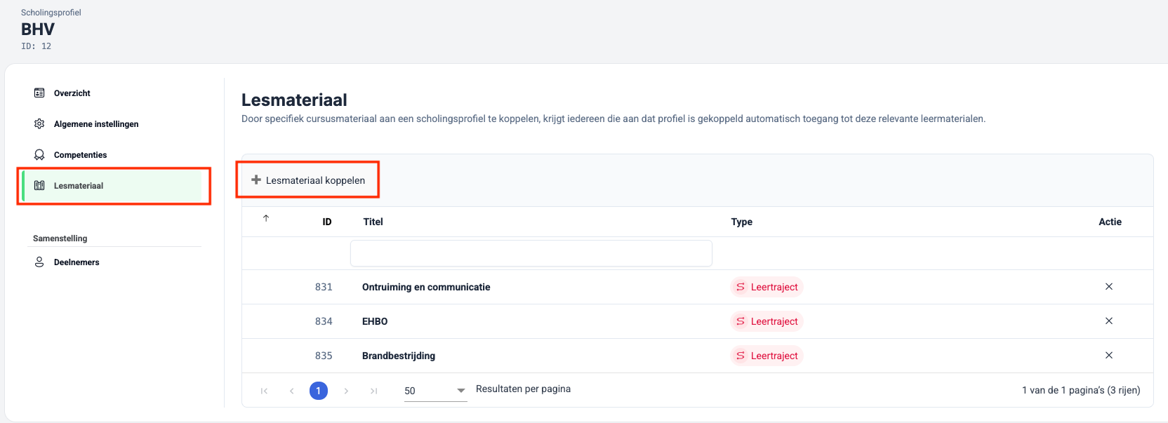 Alle deelnemers die aan dit scholingsprofiel zijn gekoppeld, krijgen nu automatisch toegang tot het bijbehorende lesmateriaal. Je hoeft dit dus niet afzonderlijk voor iedere deelnemer te plannen. Dat bespaart jou als beheerder aanzienlijk tijd en handelingen.