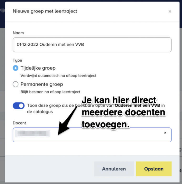 mogen inschrijven).Selecteer de Docent(en)