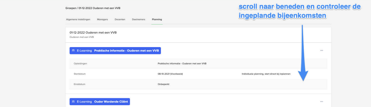 Geef leertrajecten een titel met daarin handige informatie voor zowel intern gebruik als voor de deelnemers. Bijvoorbeeld beginnend met de datum van de eerste bijeenkomst en daarna de titel van de training. Dan krijg je titels als: