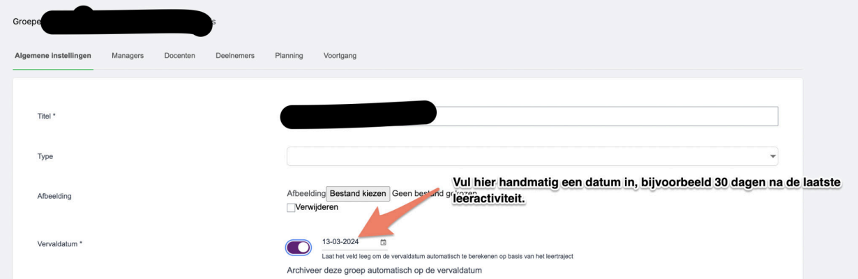 Je kan bijvoorbeeld 30 dagen na de laatste leeractiviteit instellen als archief datum.