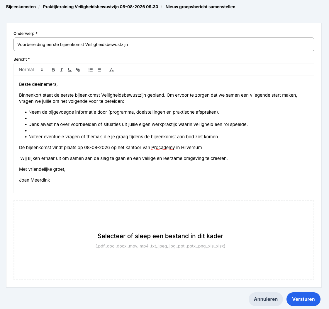 ✉️ Bericht deelnemers.Onderwerp en bericht zijn verplichte velden.