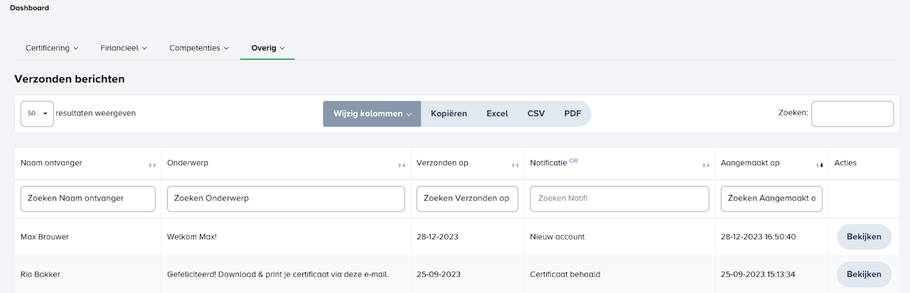 Alle sjablonen van notificaties die automatisch worden verstuurd door het systeem zijn aan te passen door beheerders. Bij het instellen van de notificaties kan je ook direct het sjabloon aanpassen.