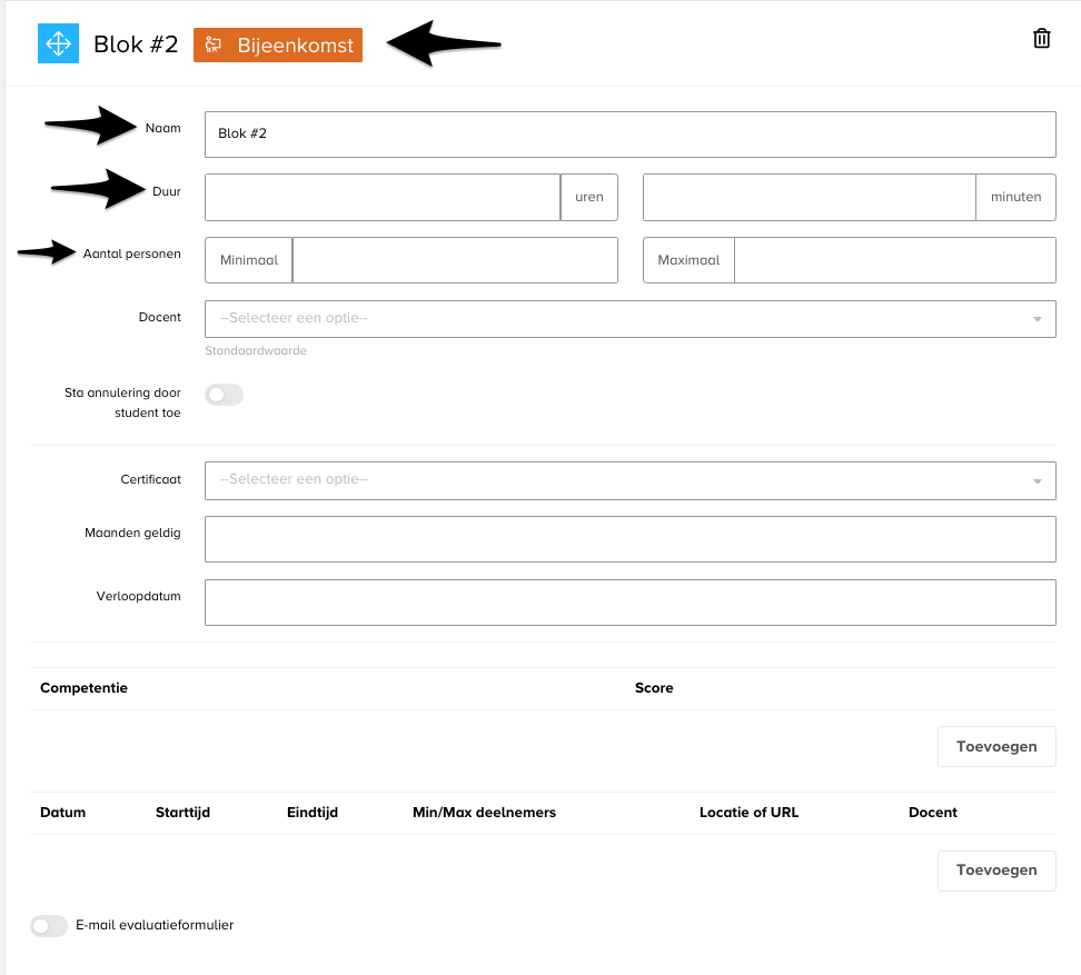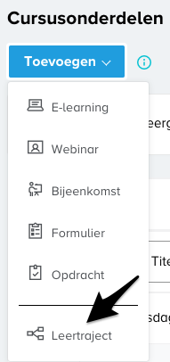 Je wil een leertraject aanmaken met daarin verschillende cursusonderdelen.