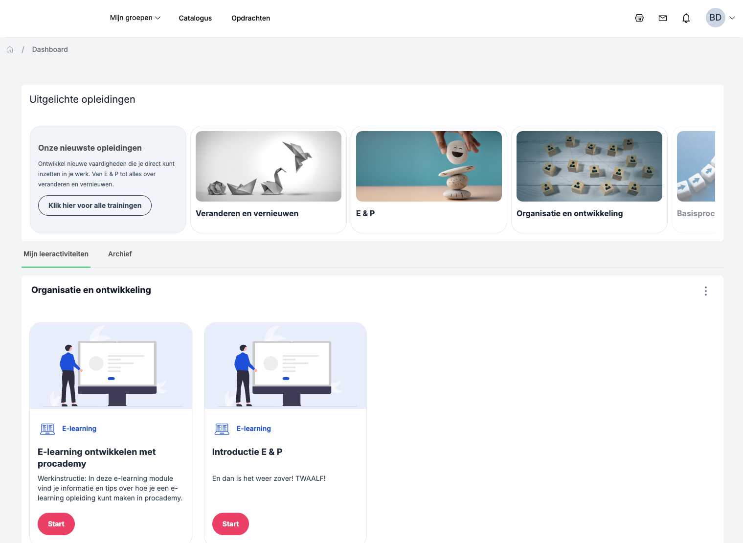 Team implementatie heeft wat basisinstellingen gedaan, zodat je kan beginnen. Start met het aanmaken van gebruikers, trainingen en communicatie-instellingen. Het is cruciaal om goed na te denken over de behoeften van je organisatie en je gebruikers. Met deze solide basis kun je het platform efficiƫnt beheren.