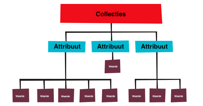 Onder een collectie kunnen meerdere attributen hangen. Aan een attribuut kunnen meerdere attribuutwaarden worden gekoppeld.